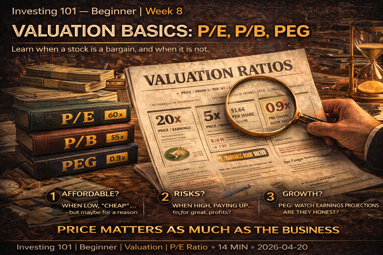 The skill of deciding what a business is worth is called valuation, and it is the part of investing that separates people who understand what they are doing from people who are guessing. This week we cover the three most common beginner valuation ratios — what they actually mean, when they work, and the specific ways they mislead people who use them without understanding them.